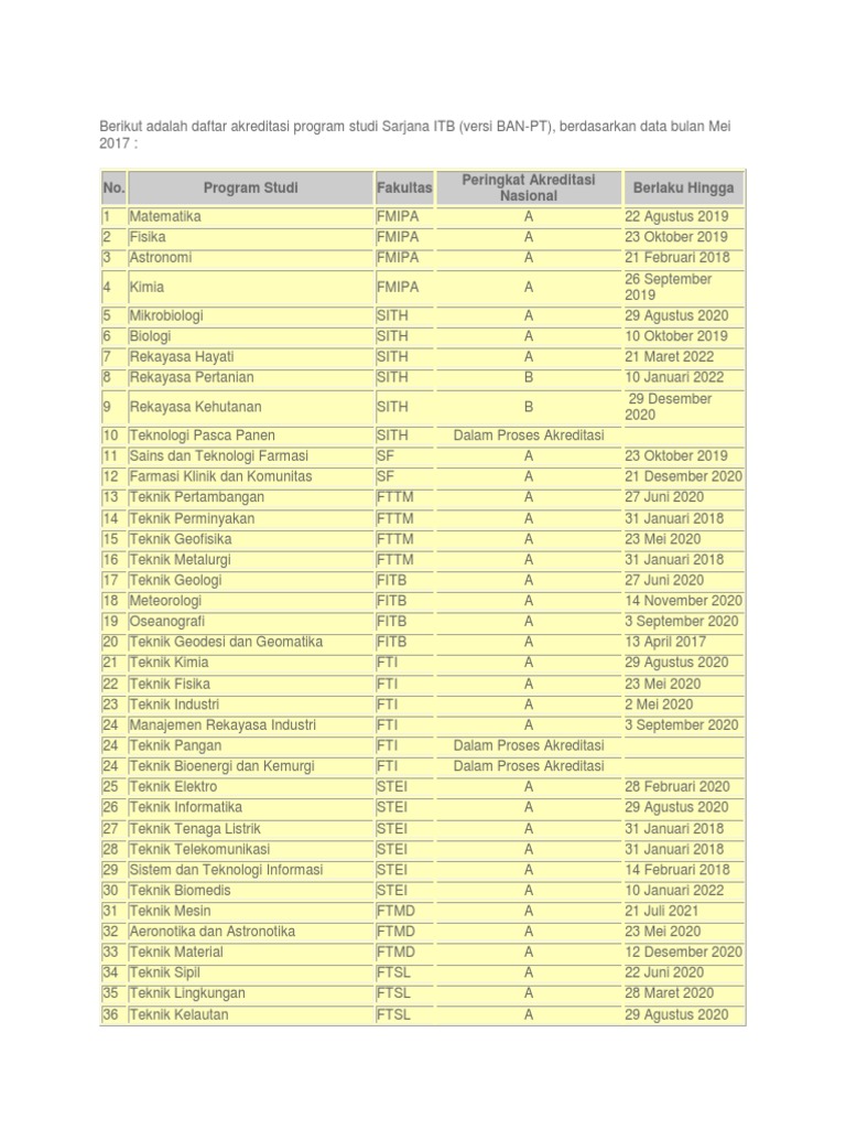 Akreditasi Program Studi Sarjana Itb